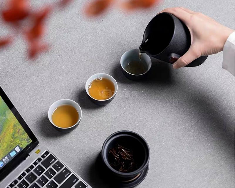 (平台精选)如意快客杯 质高价低 一壶三杯乌金釉便携式旅行茶具